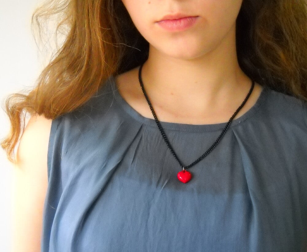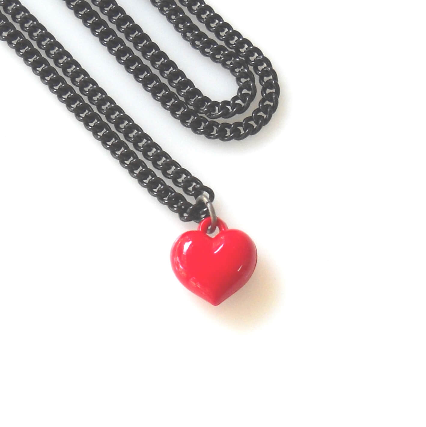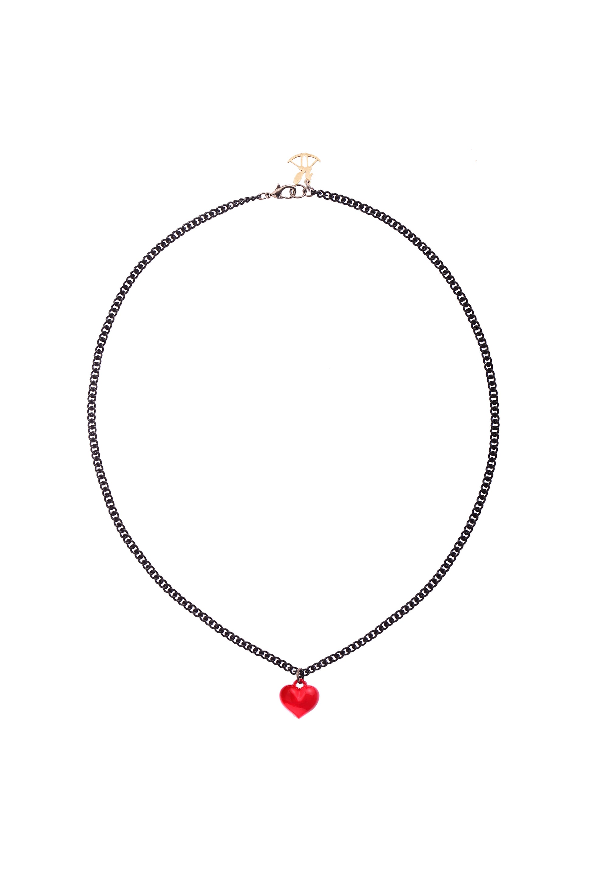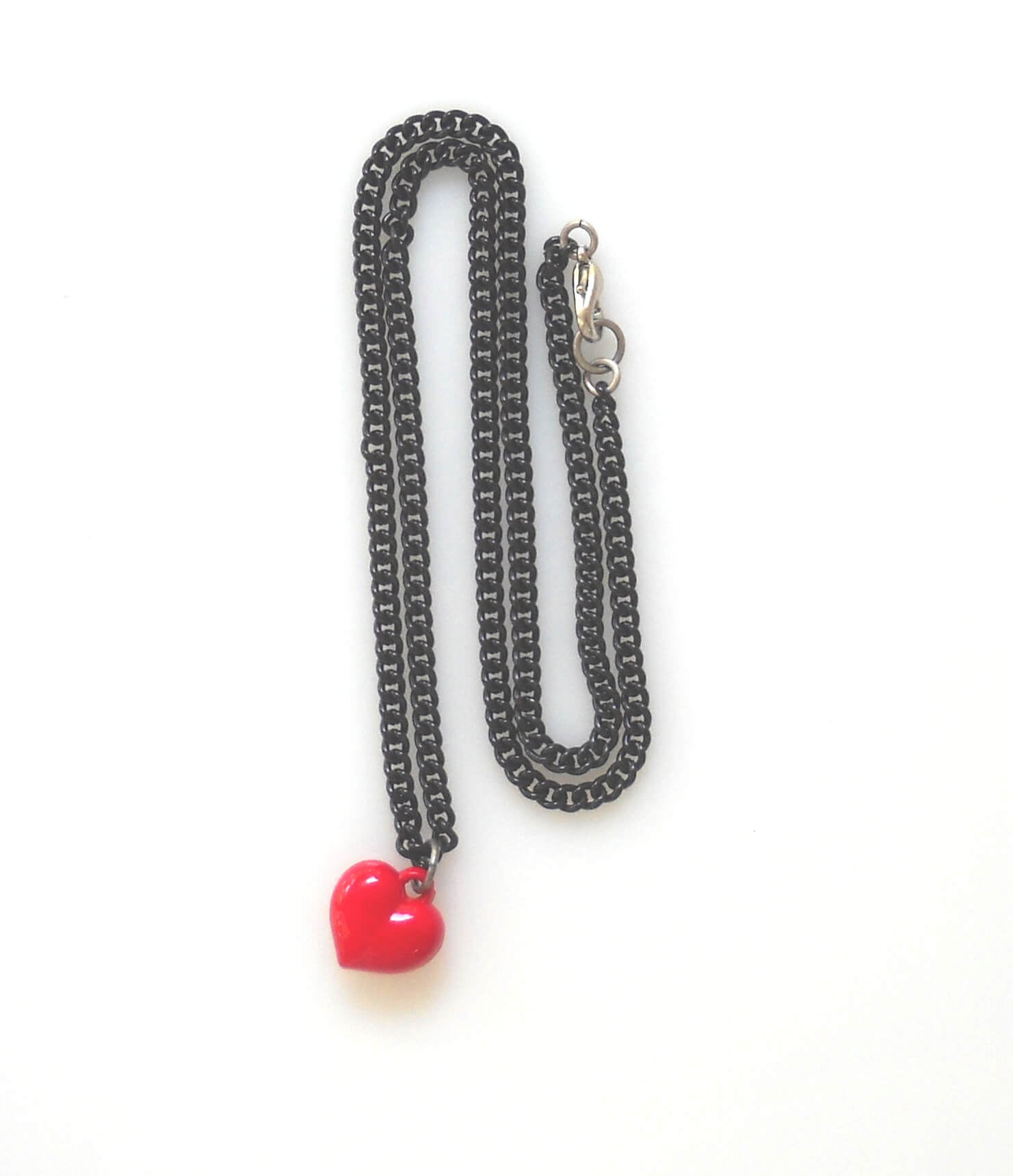 לב אדום בגודל בינוני על שרשרת דקה מושחרת