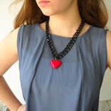 לב גדול תלת מימדי (2 גדלים לבחירה), עשוי אקרליק. תלוי על שרשרת גורמט עבה ממתכת בציפוי שחור.