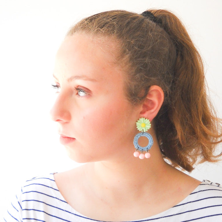 עגילי FLOWER POWER בירוק סלדין תכלת וורוד בייבי