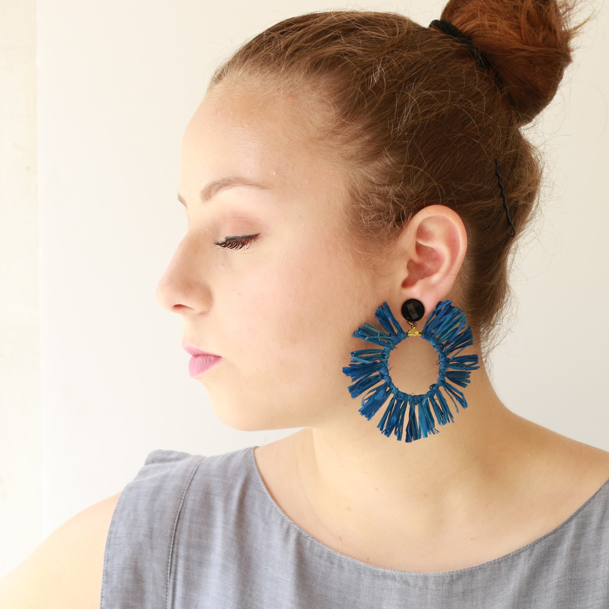 שימי לב, העגילים מגיעים בכחול, אדוום, צהוב, ירוק וראפייה טבעית.
