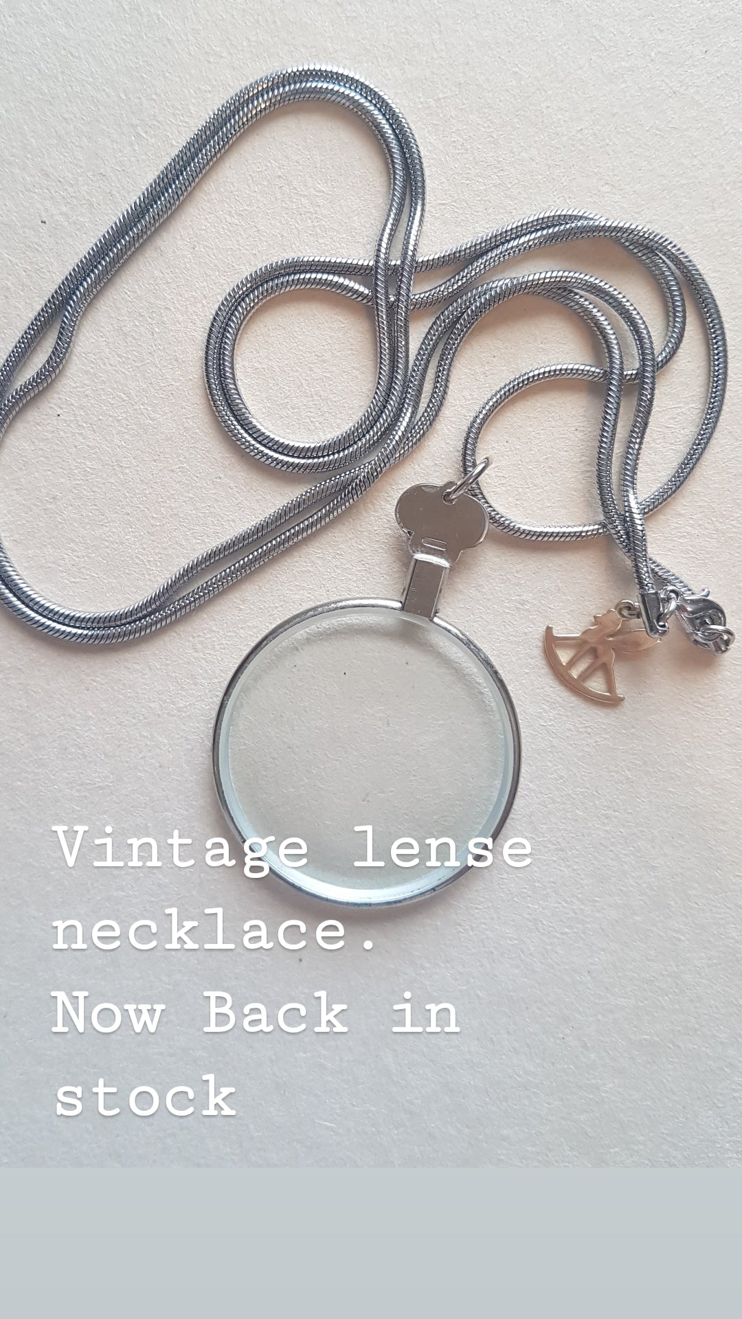 שרשרת ארוכה כסופה עם תליון עדשה אופטית וינטאג'