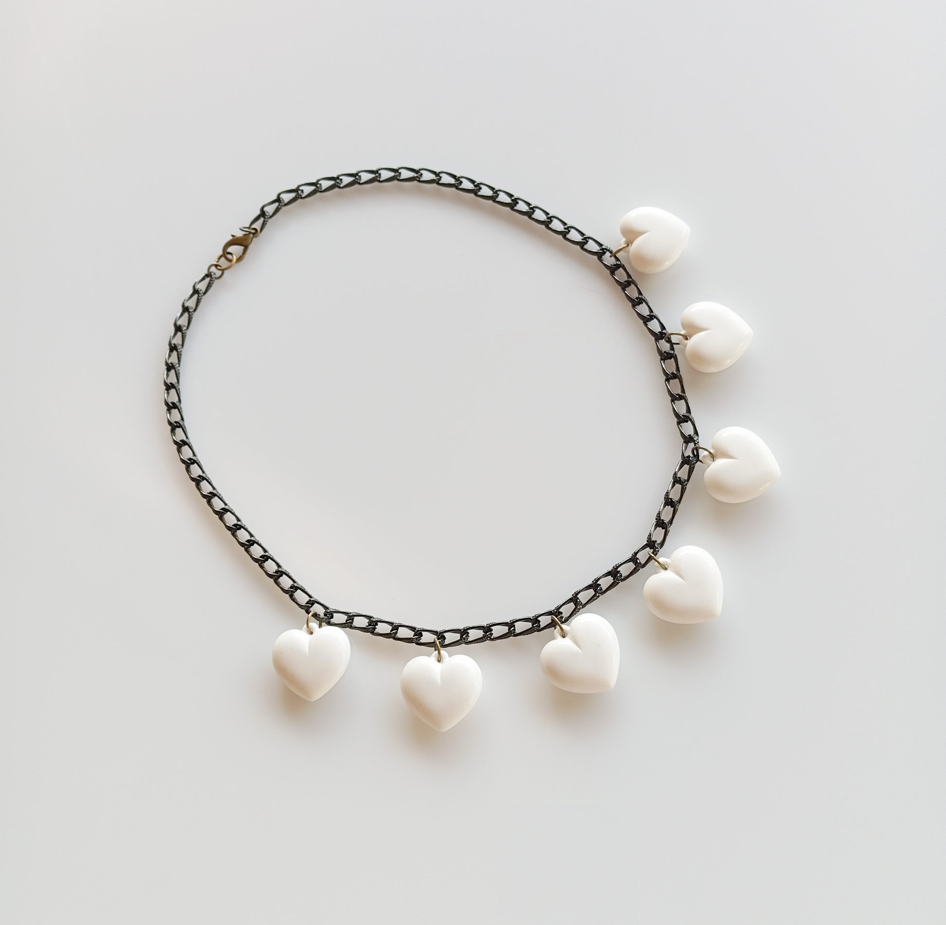 שרשרת חוליות שחורה עם תליוני לב לבנים