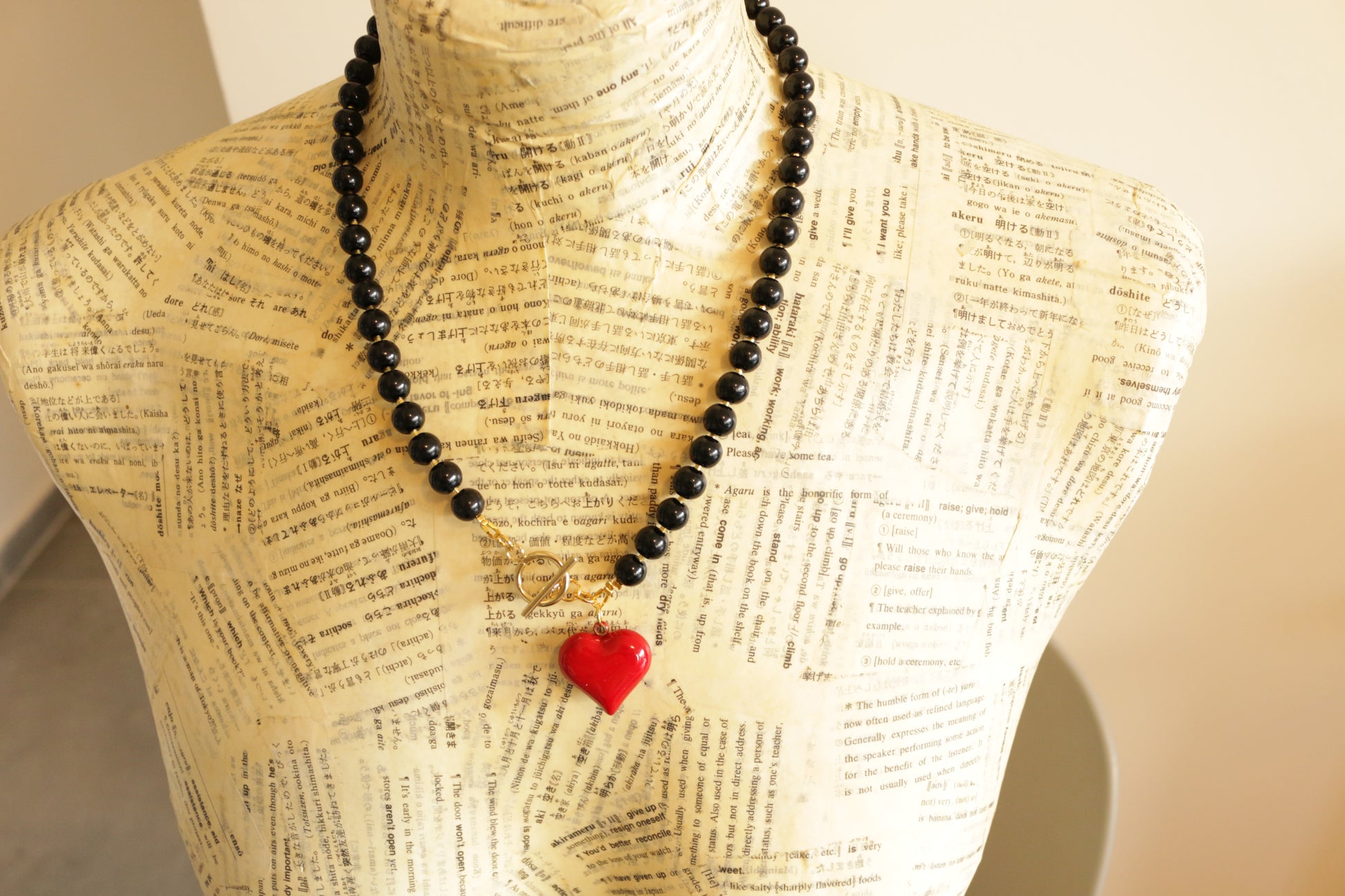 שרשרת חרוזים שחורה עם לב אדום או זהוב