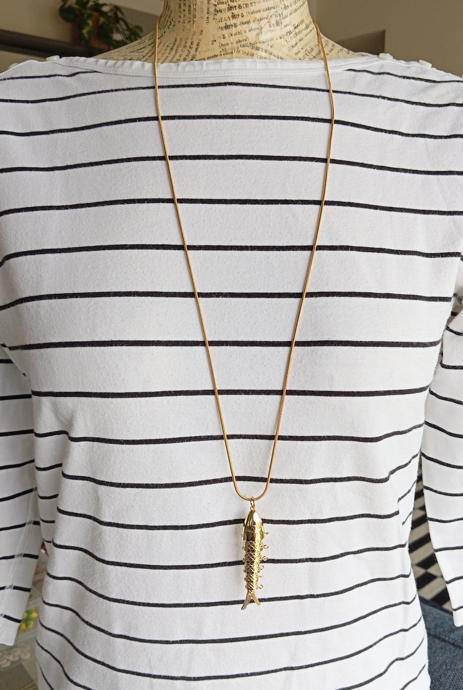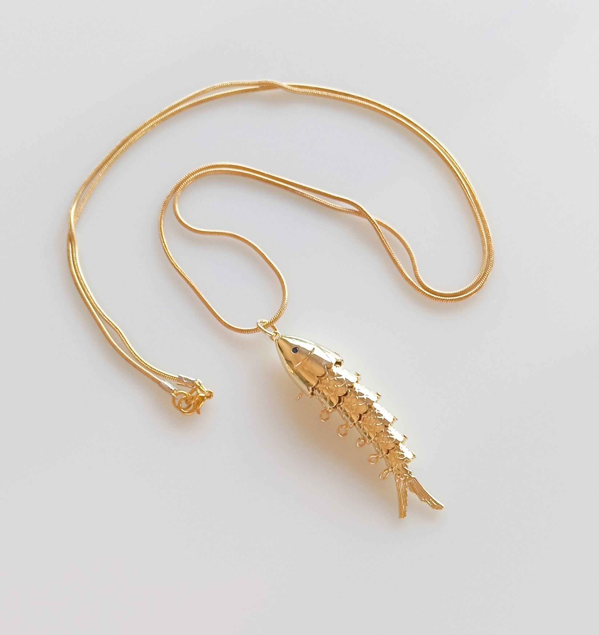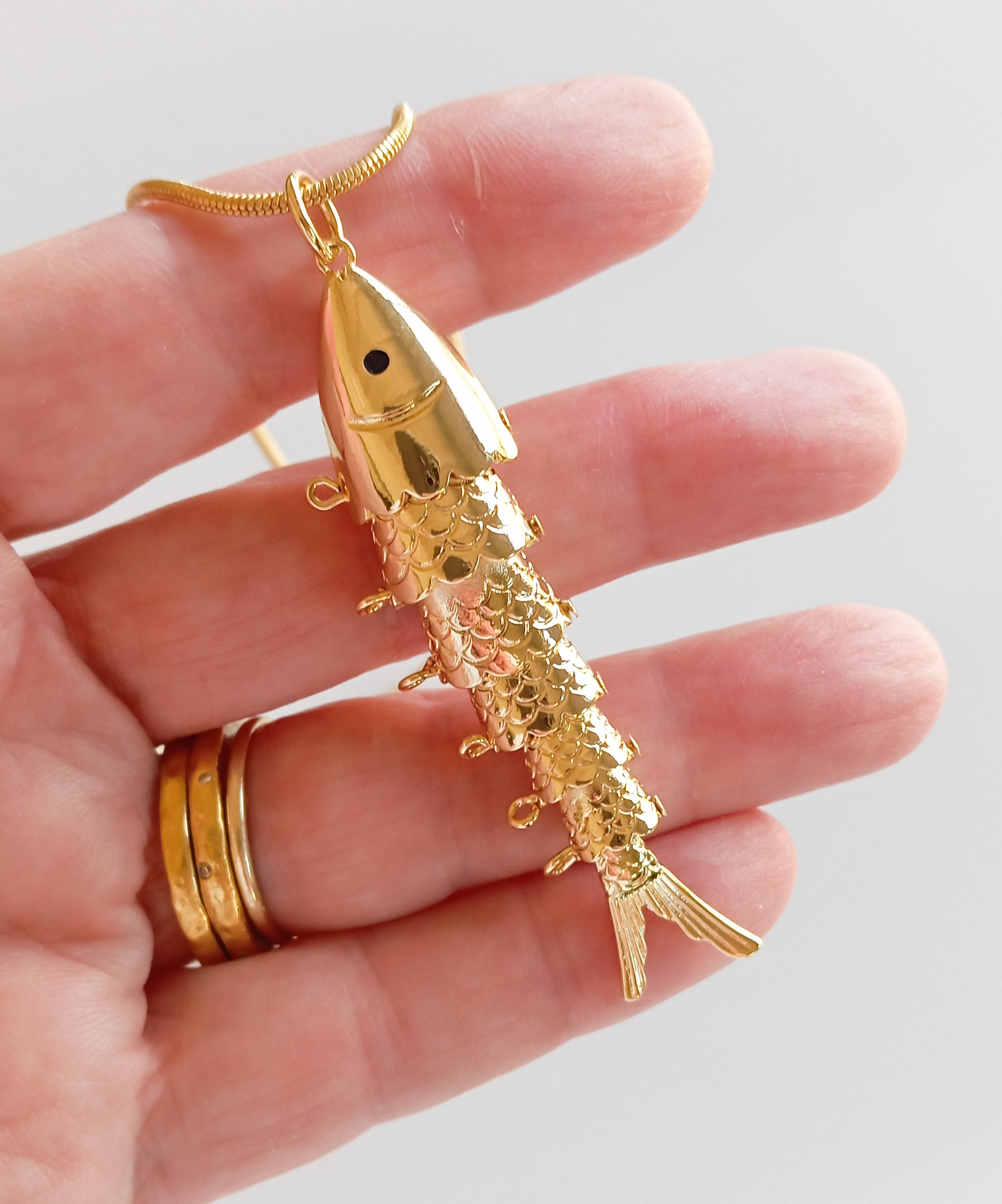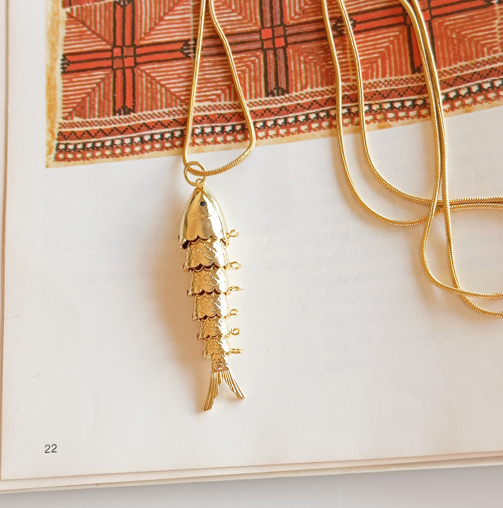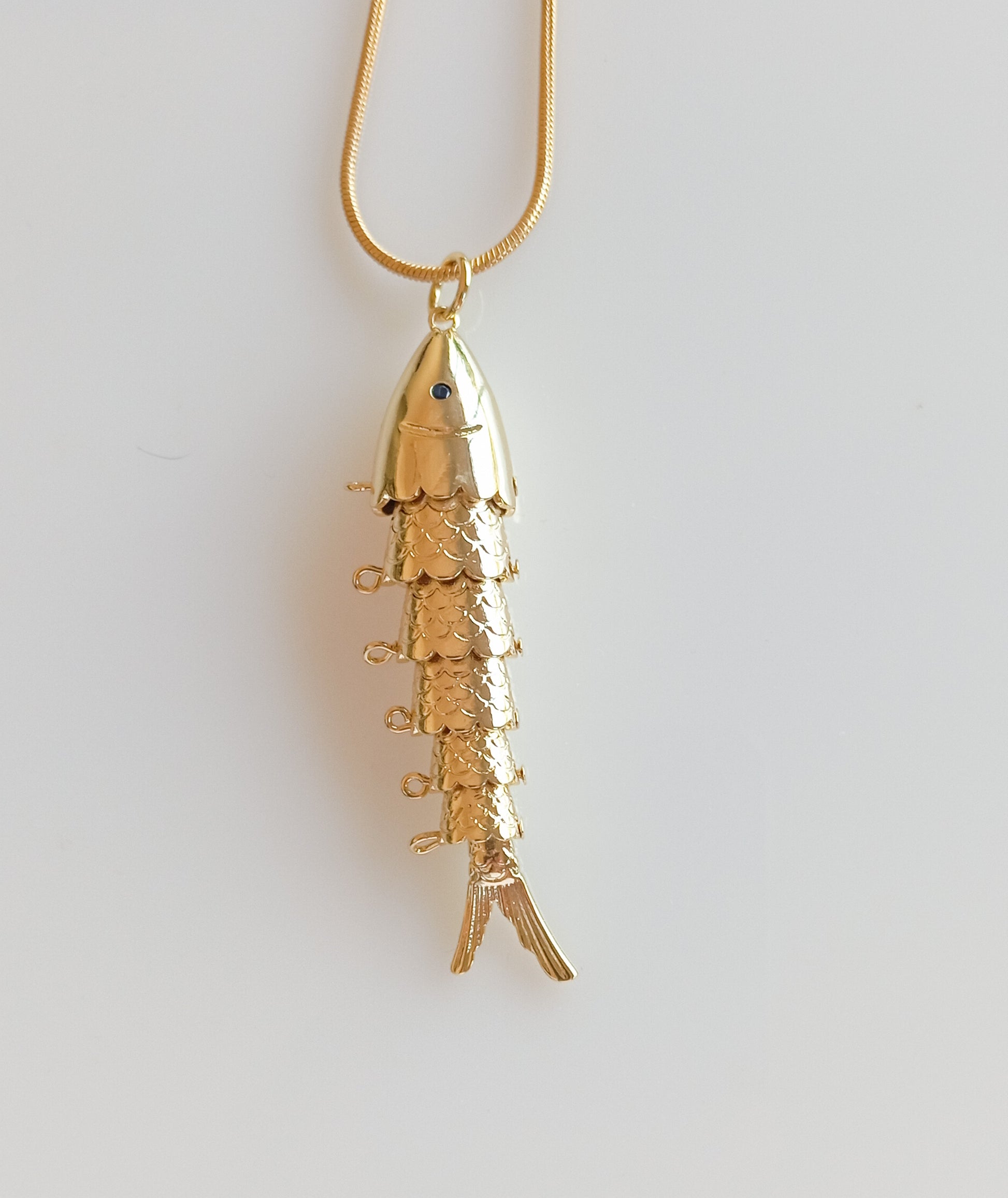 שרשרת דקה בציפוי זהב עם תליון דג חוליות בציפוי זהב.